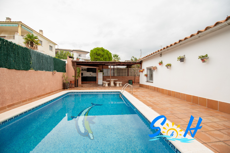 Villa in Calafell near the beach and Barcelona. The house has a private pool and garden. It is close to shops and supermarkets.